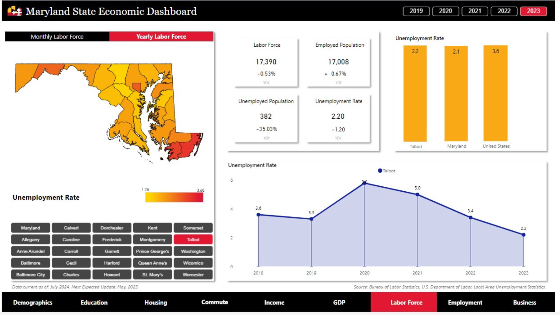 Labor Force – Talbot County Economic Dashboard