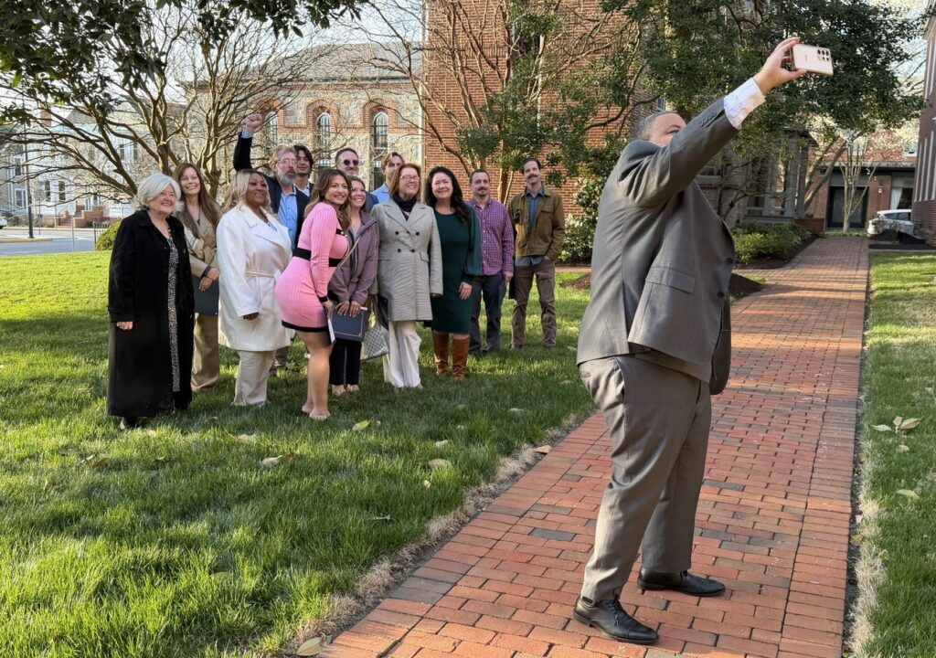 Talbot Works Business Academy Program Facilitator Will Holmes, far right, takes a selfie with the Cohort IV graduates of the Talbot Works Business Academy following their graduation ceremony with the Talbot County Council.