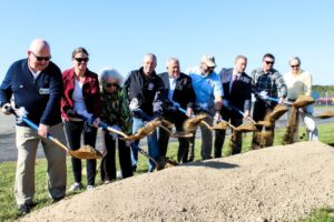 From left to right: David Montgomery, Easton Town Council, Megan Cook, Easton Town Mayor, Lynn Mielke, Talbot County Council, Chuck Callahan, Talbot County Council President, Mike Henry, former Easton Airport Manager, Micah Risher, Easton Airport Manager, Frank Gunsallus, Town Council President, Dave Stepp, Talbot County Council, Jack Petite, President Airport Advisory Board